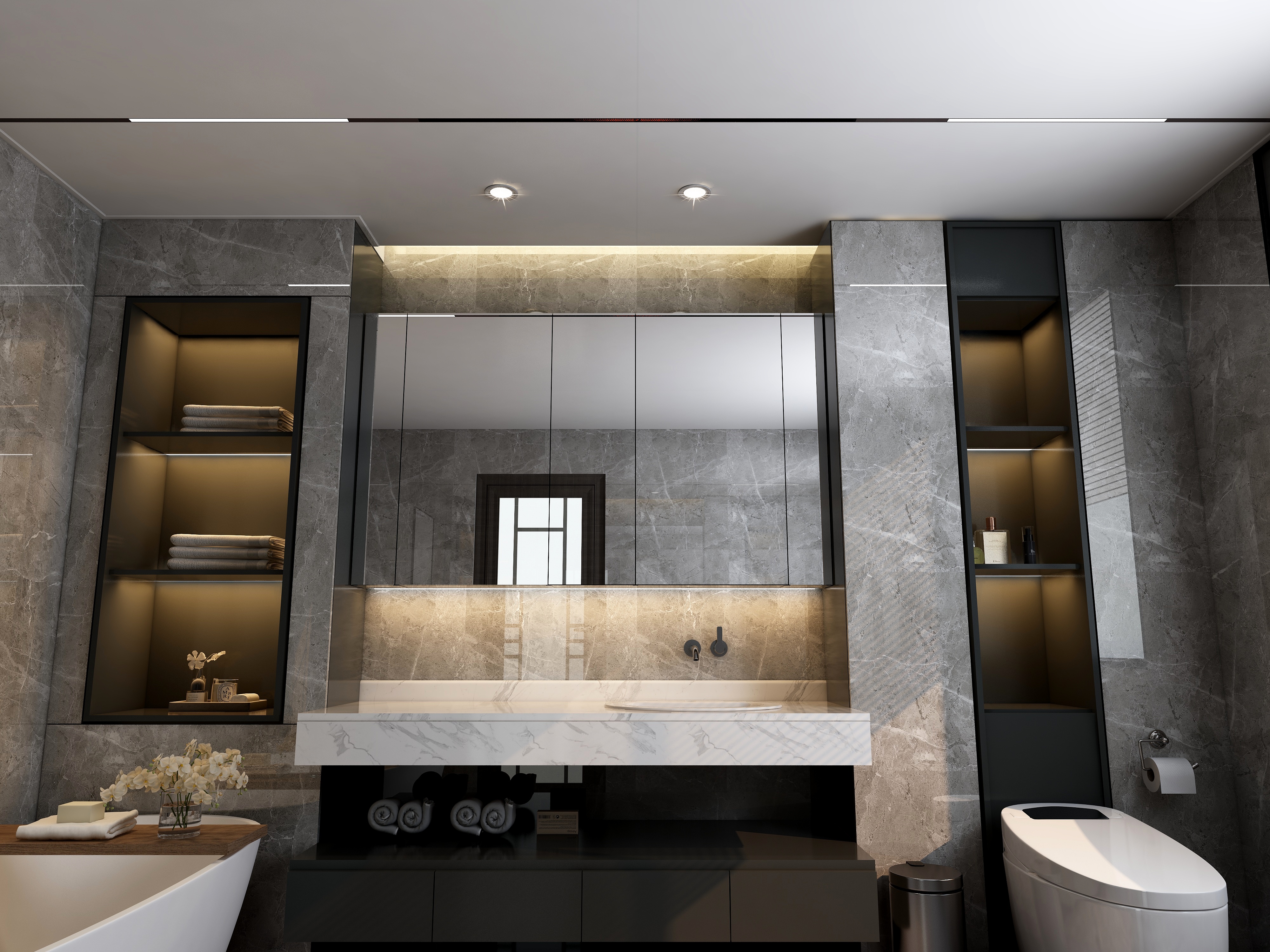 柔美暖色LED光源,配合質感反光燈槽,避免直射眼睛。星雅圖浴室暖空調溫潤如月,彌散在家的四周。這是一份在深夜讓人享受的舒適光線,只屬于家的光線。