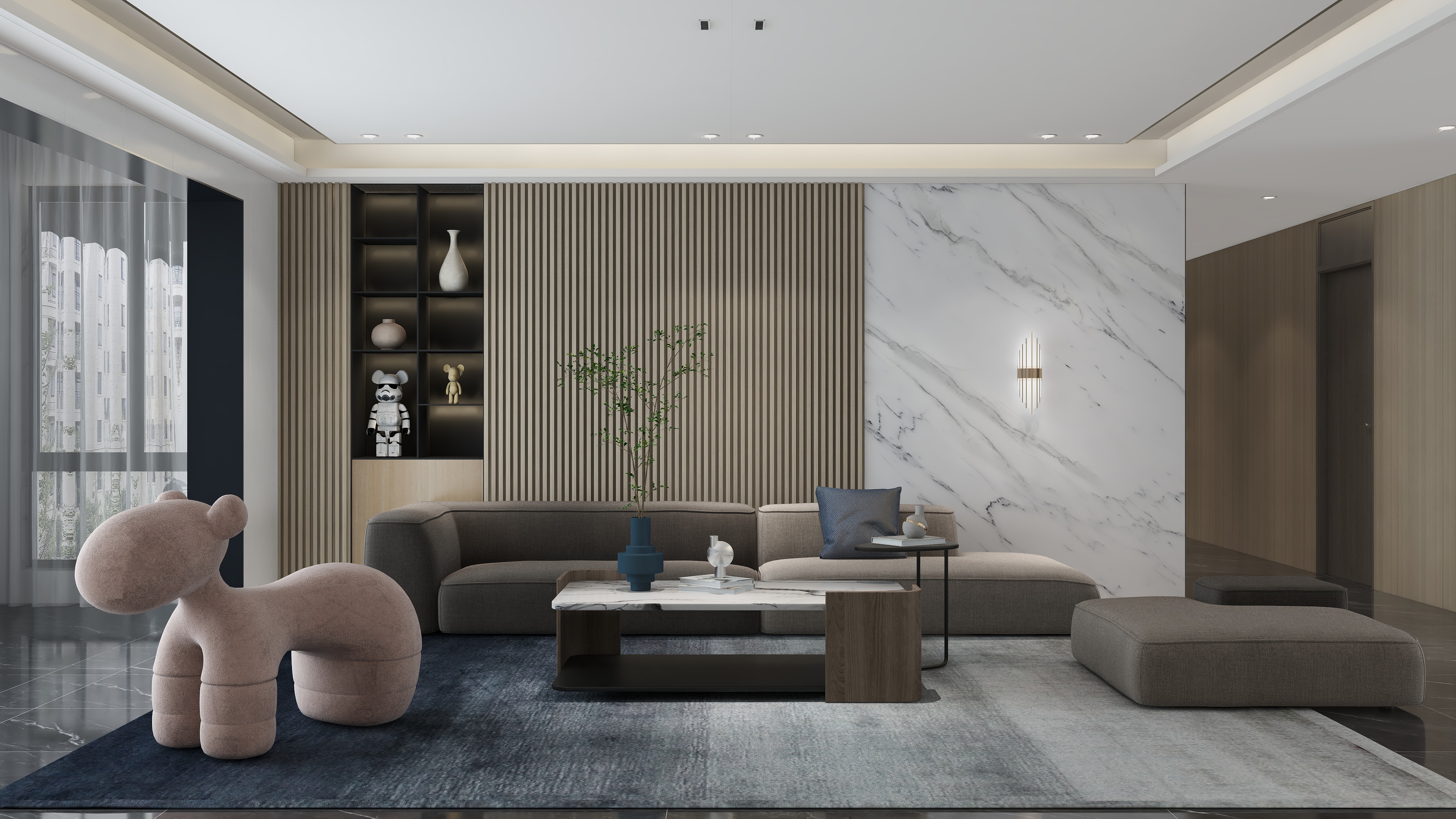 背景墻會按照材質的尺寸屬性及設計方案留下一些縫,自然地成為一種裝飾。