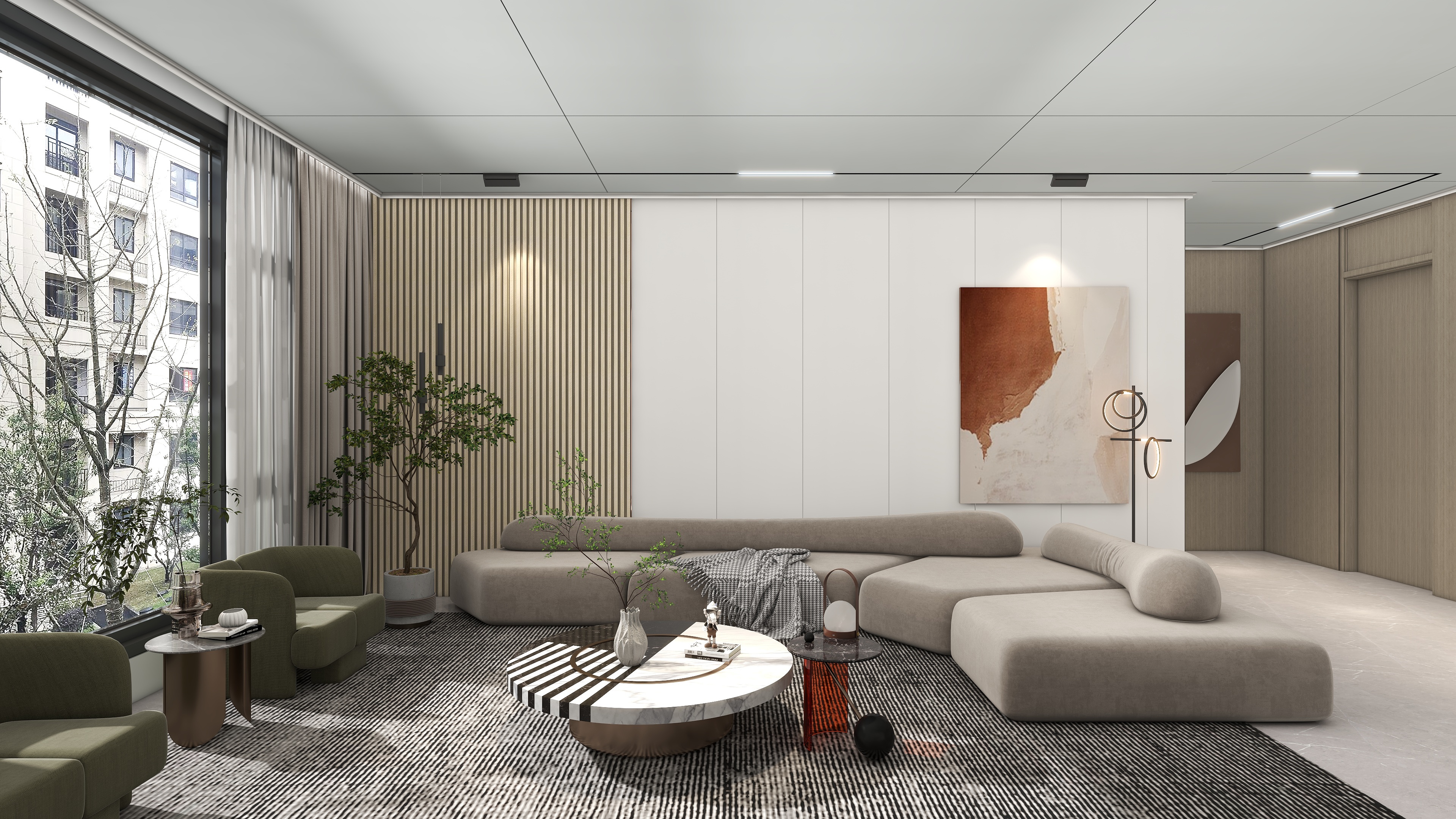 使用線條,一定程度上能讓空間具有延伸感,看似簡單卻能產生大效果的裝飾。