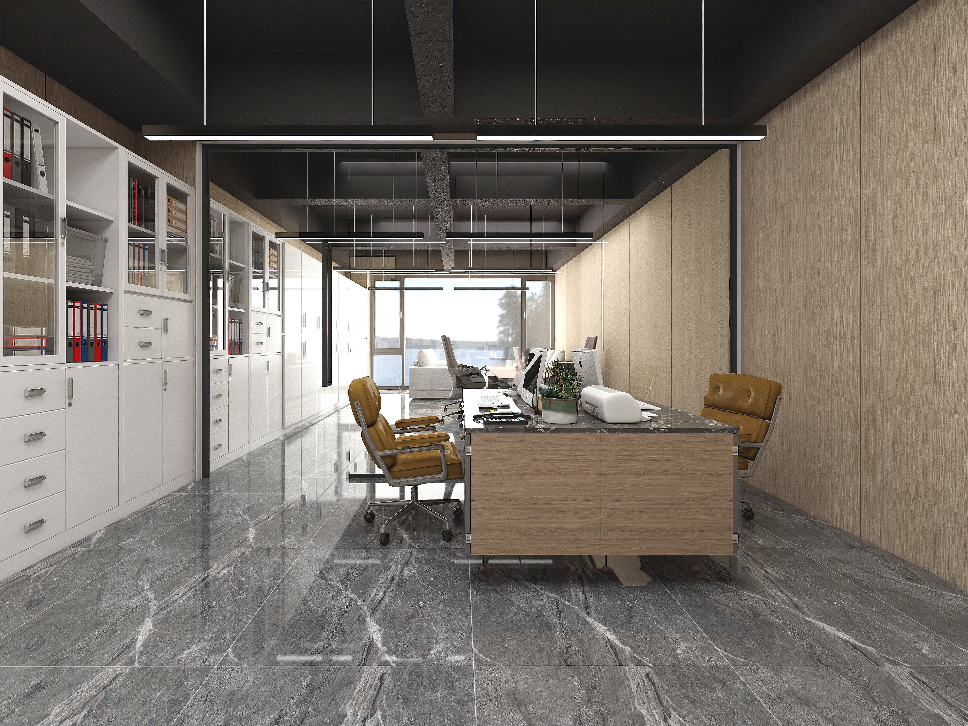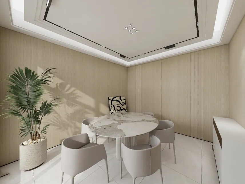 一推開門,便能感受到整個辦公室的裝飾莊重沉穩,既典雅又有格調。原木木紋是非常經典的配色,該案例選了木飾面橡木搭配原木配色,辦公區、會議室通過運用原木元素和自然色調,營造出溫馨舒適的工作氛圍。