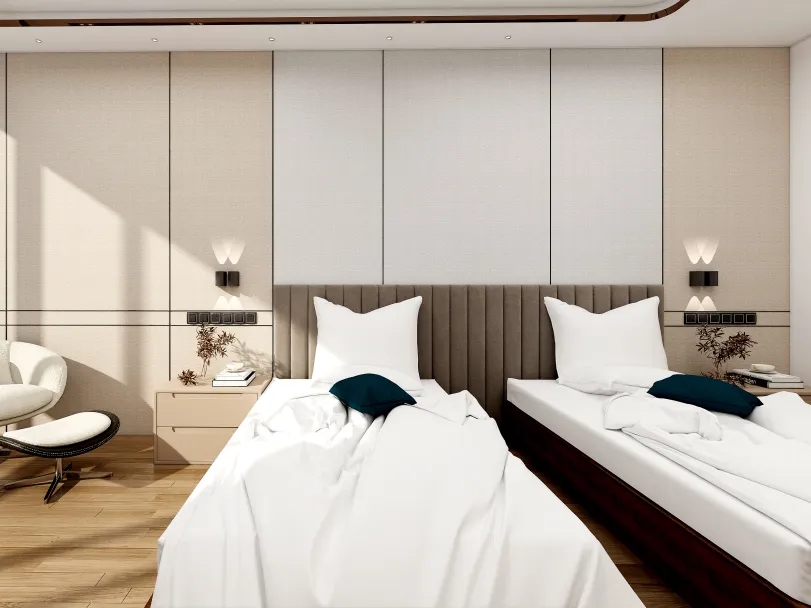 賓館過道整體采用集成墻板搭配金屬線條設計,用錯層發光邊線來增強層次感,使得空間具備良好照明的同時,又突出了設計感~酒店客房以現代簡約的風格為主,在設計中加入了許多簡潔的線條設計,豐富了空間層次!走進房間,就給人以寬敞、舒適、干凈的感受。