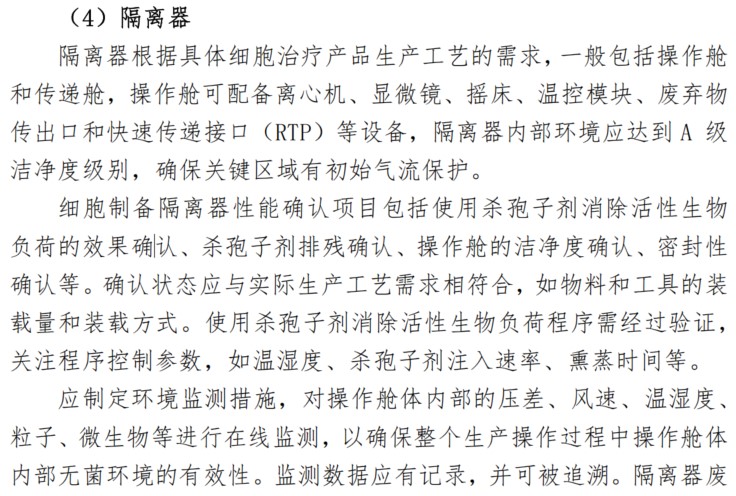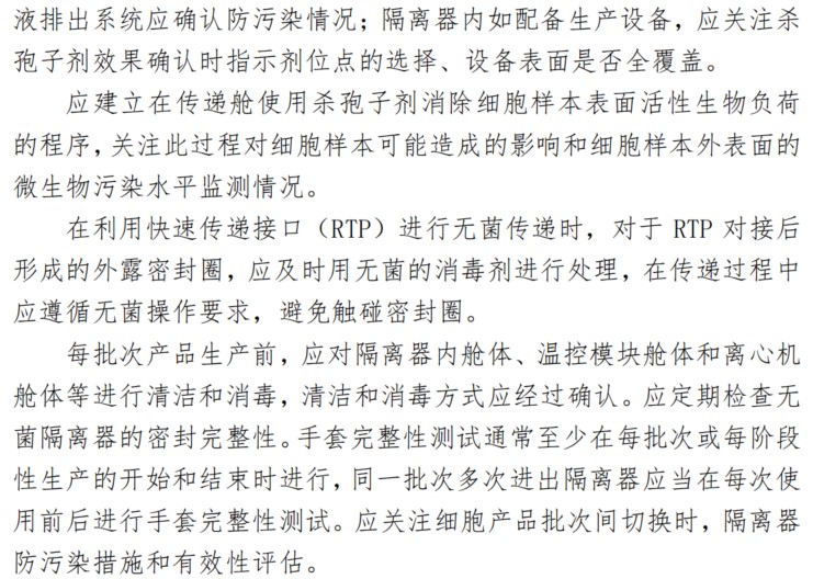 隔離器是細(xì)胞治療產(chǎn)品生產(chǎn)的常見設(shè)備,是無菌生產(chǎn)的必要條件,《指南》中對隔離器的要求主要包括以下幾個方面: