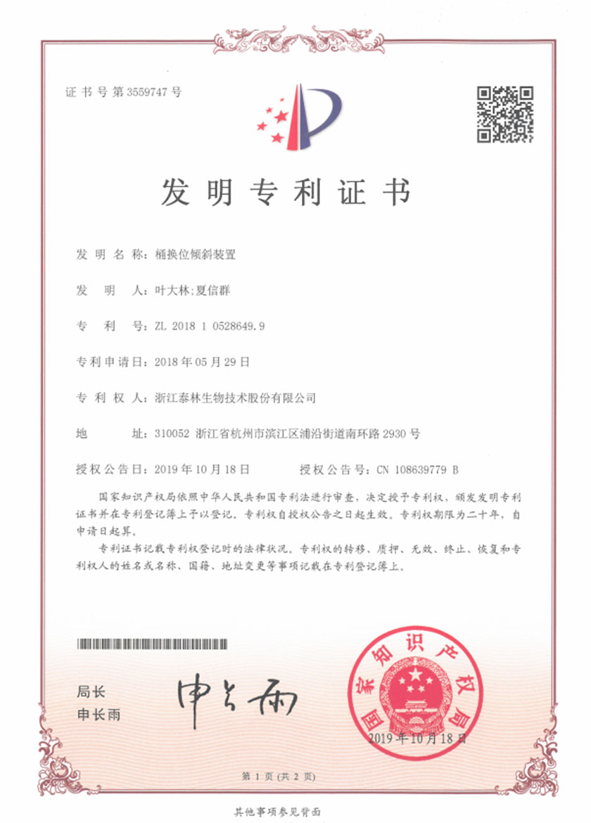 泰林生物擁有國家專利450余項,其中發(fā)明專利63項。