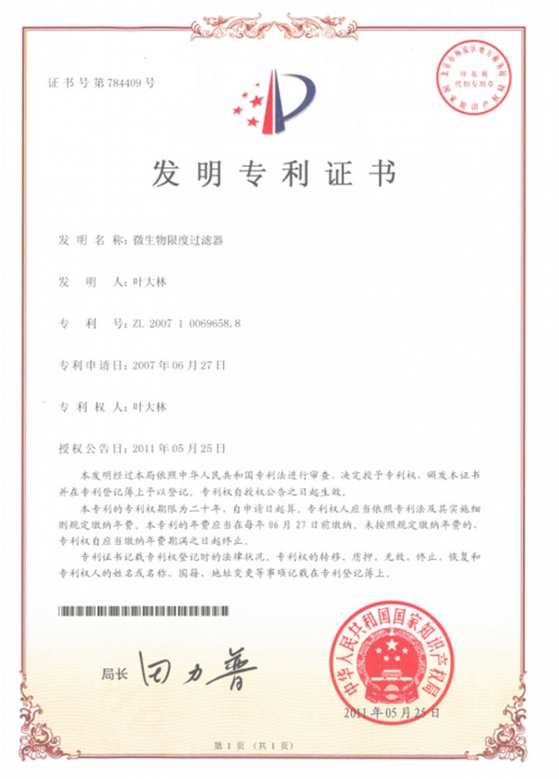 微生物限度過濾器ZL 2007 1 0069658.8 -