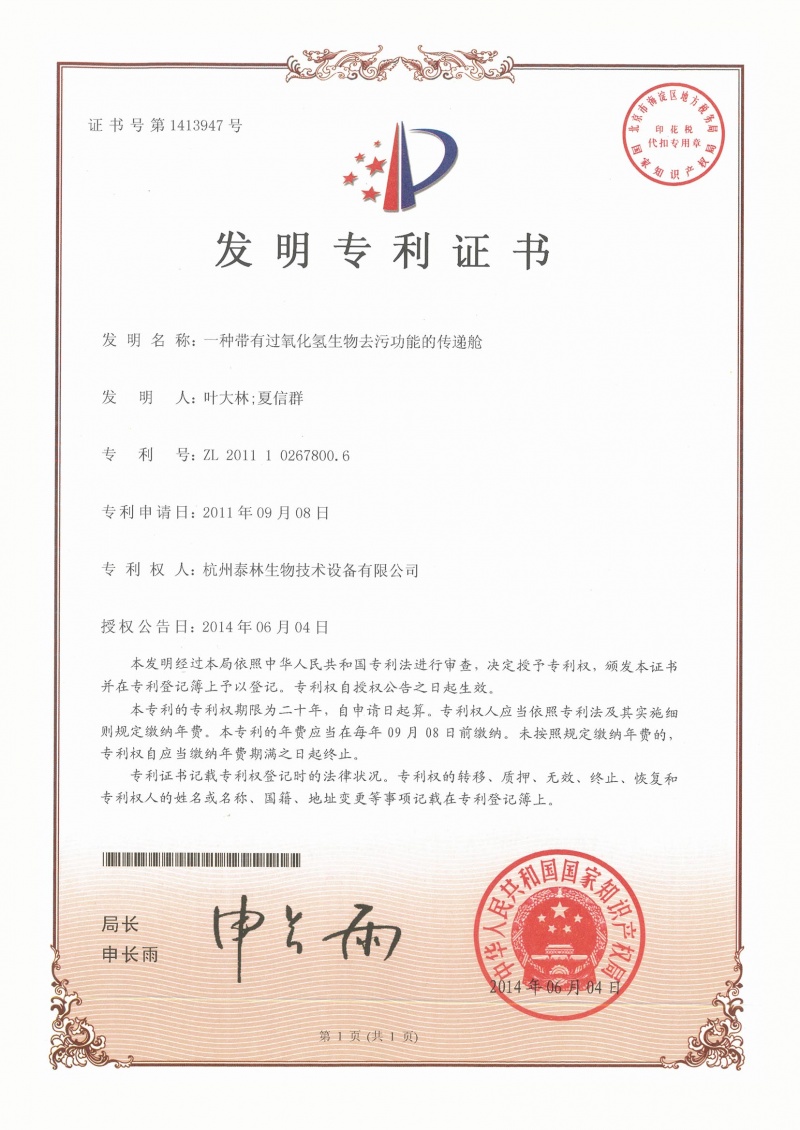 一種帶有過氧化氫生物去污功能的傳遞艙ZL 2011 1 0267800.6 -