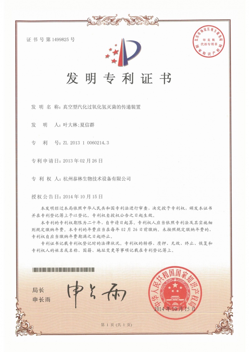 VHP汽化裝置的控制方法及滅菌設(shè)備ZL 2024 1 1013889.7 -