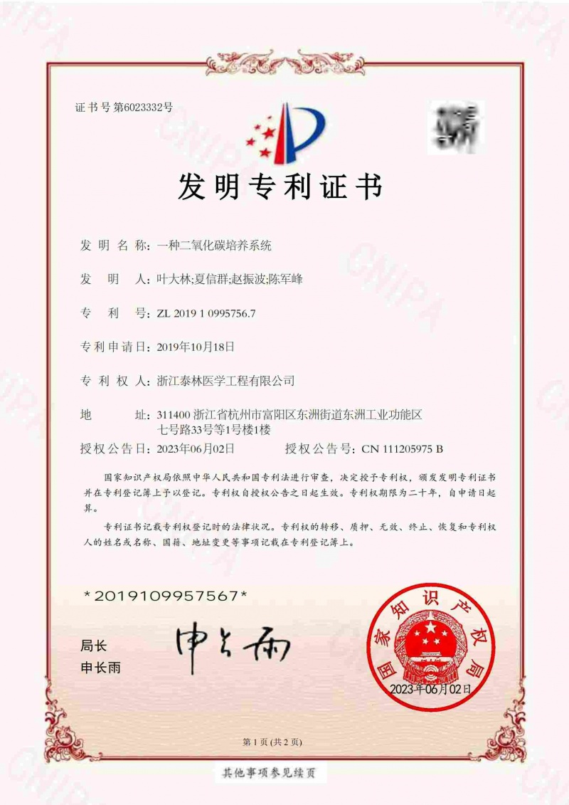一種二氧化碳培養(yǎng)系統(tǒng)ZL 2019 1 0995756.7 -